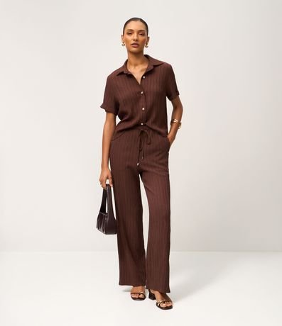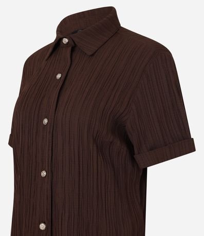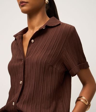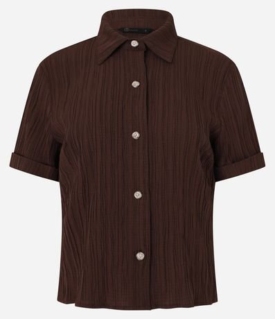 Ref: Camisa de mangas curtas confeccionada com viscose mais sustentável com colarinho na gola e abotoamento frontal. Peça tem malha toda texturizada e botões metalizados com formato muito charmoso.