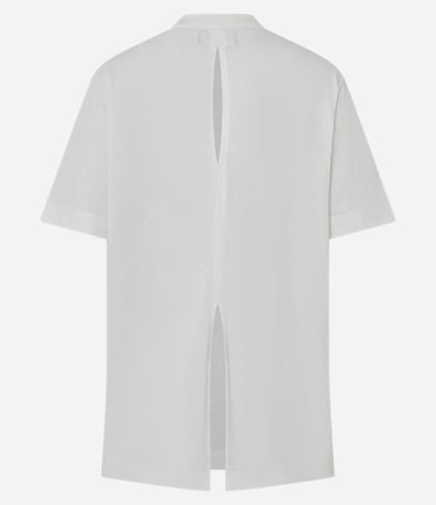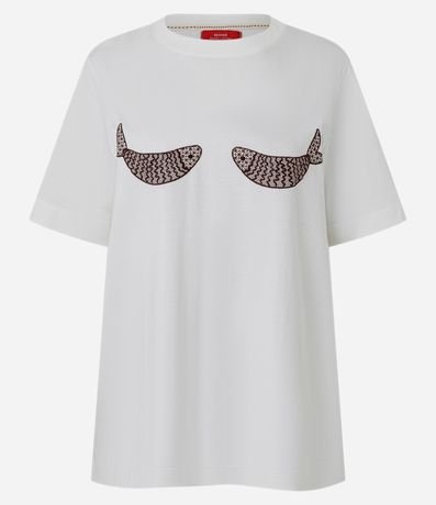 Ref: T-shirt alongada com manga curta, confeccionada em algodão bci mais sustentável. Possui bordados de peixes no peito e fendas nas costas.