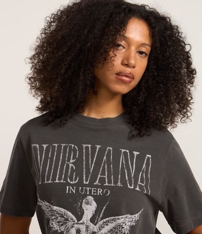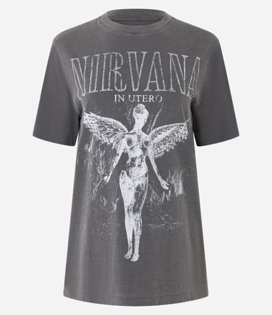 Ref: T-shirt alongada em algodão bci mais sustentável, manga curta e estampa frontal, anjo In Utero de Nirvana.