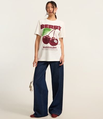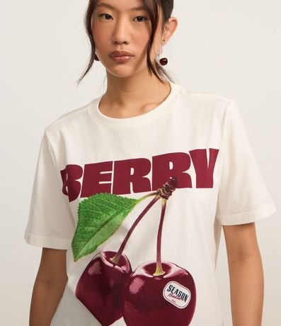 Ref: T-shirt alongada com manga curta, confeccionada em algodão bci mais sustentável, produzida em boas prátias ambientais e com estampa frontal, Berry.