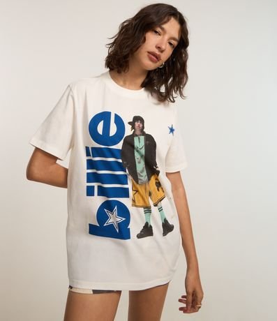 Ref: T-shirt alongada confeccionada em algodão bci mais sustentável e produzido através de boas práticas ambientais. Possui mangas curtas e estampa frontal Billie Eilish