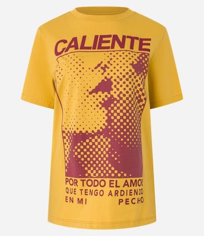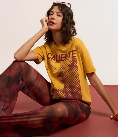 T-shirt alongada em algodão bci mais sustentável e estampa frontal com lettering Caliente.