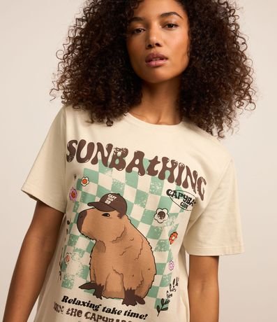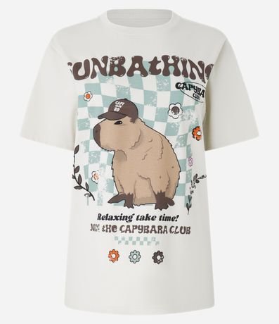 Ref: Camiseta t-shirt, alongada com manga curta, confeccionada em algodão mais sustentável e estampa frontal da nossa sensação do momento Capivara.