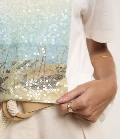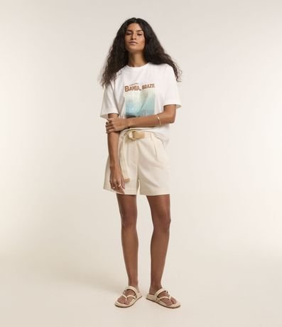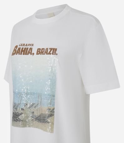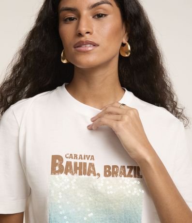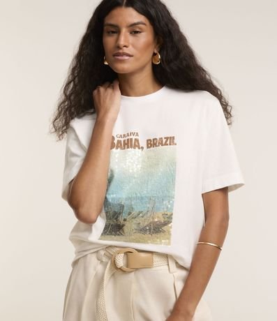 Ref: Camiseta t-shirt, alongada com manga curta, confeccionada em algodão e estampa com lettering Caraíva.