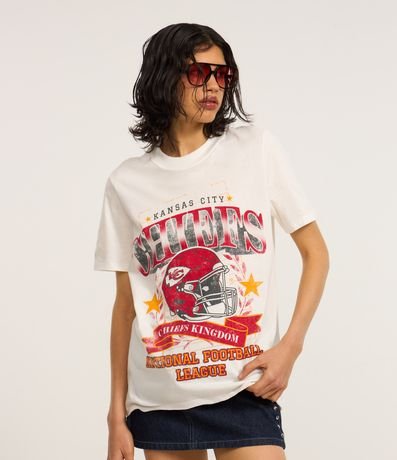 Ref: T-shirt alongada com manga curta, confeccionada em algodão bci mais sustentável e estampa frontal, NFL Chiefs.