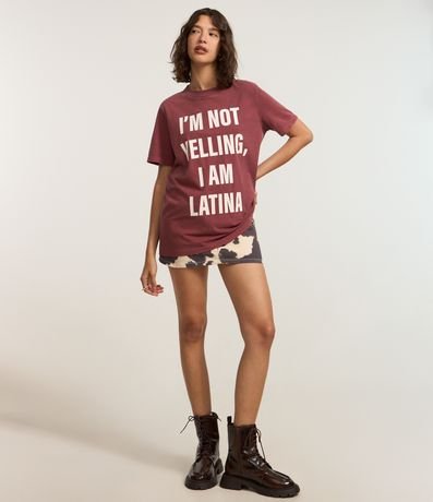 Ref: T-shirt alongada com manga curta, confeccionada em algodão bci mais sustentável e estampa frontal em lettering I'm Not Yelling I Am Latina.