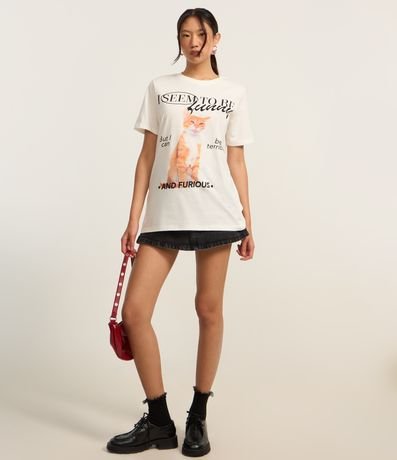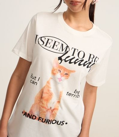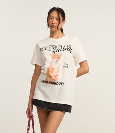 Ref: T-shirt alongada com manga curta, confeccionada em algodão bci mais sustentável e estampa frontal de gatinho com lettering I Seem To Be.