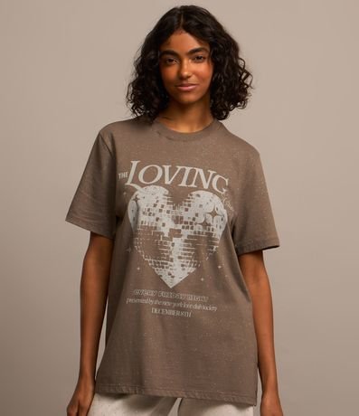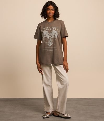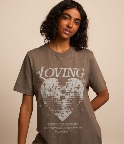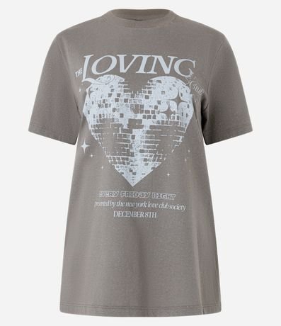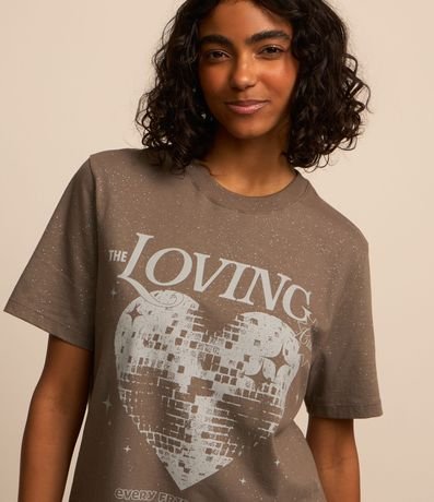 Ref: Camiseta t-shirt, alongada com mangas curtas, confeccionada em algodão mais sustentável e estampa frontal glitter Loving.