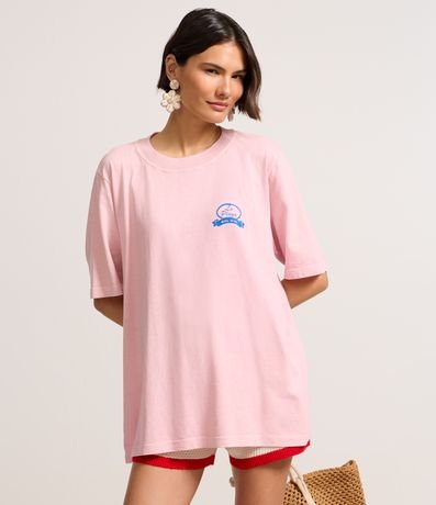 Ref: T-shirt alongada confeccionada em algodão bci mais sustentável, manga curta e estampa em lettering La Playa.