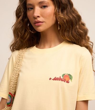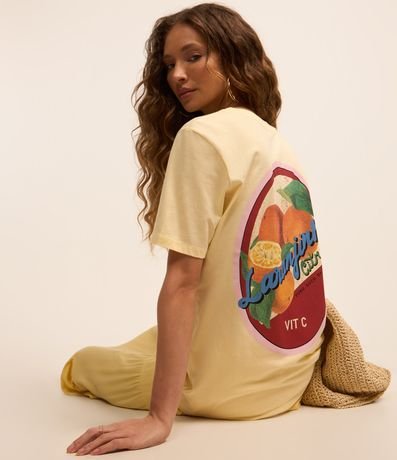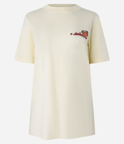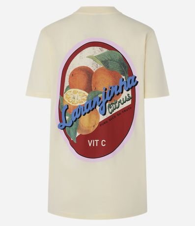 Camiseta alongada confeccionado em algodão mais sustentável, gola redonda e manga curta. Peça com estampa divertida de laranjinha.