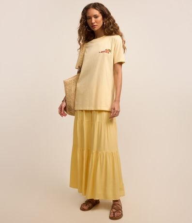 Camiseta Alongada em Algodão com Estampa Laranjinha