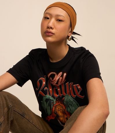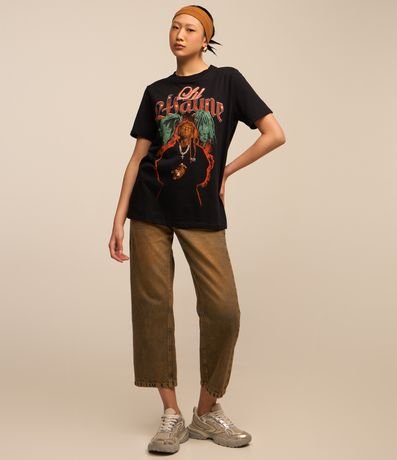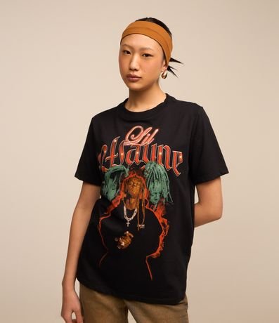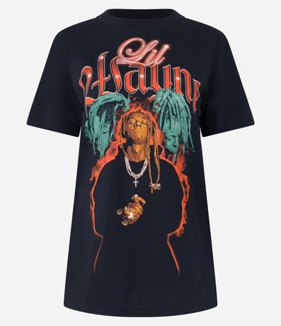 Ref: Camiseta t-shirt, alongada com manga curta, confeccionada em algodão mais sustentável e estampa frontal, rapper Lil Wayne.