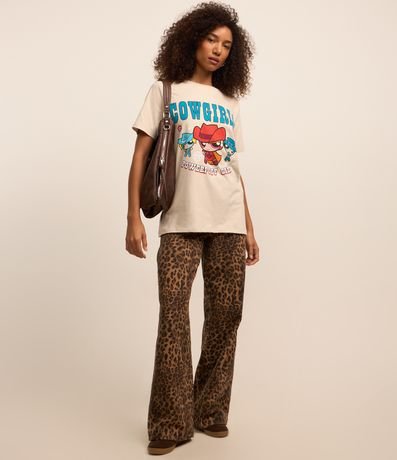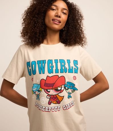 Camiseta t-shirt, alongada com manga curta, confeccionada em algodão e estampa frontal Cowgirls, Meninas Superpoderosas.