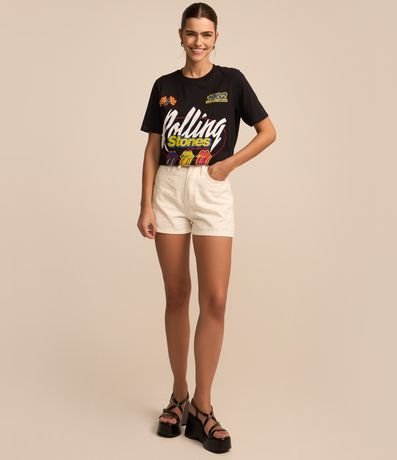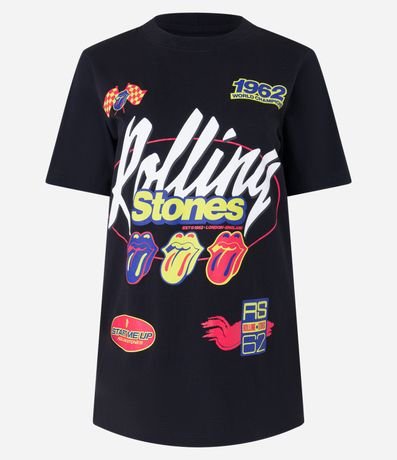 Ref: Camiseta alongada com mangas curtas, confeccionada em algodão e estampa frontal estilo corrida, Rolling Stones.