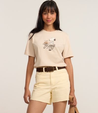 Ref: T-shirt alongada em algodão bci mais sustentável, manga curta e estampa frente e costas, Snoopy.