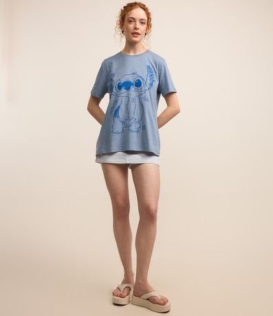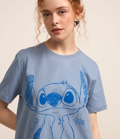 Ref: Camiseta t-shirt, alongada com manga curta, confeccionada em algodão mais sustentável e com divertida estampa em estilo rabisco do nosso personagem favorito, Stitch.