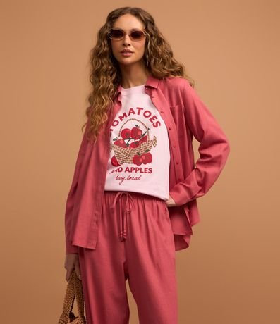 Camiseta Alongada em Algodão com Estampa Tomates e Maças
