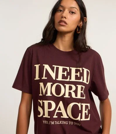Ref: T-shirt alongada com manga curta, confeccionada em algodão bci mais sustentável e estampa frontal em lettering I Need More Space.