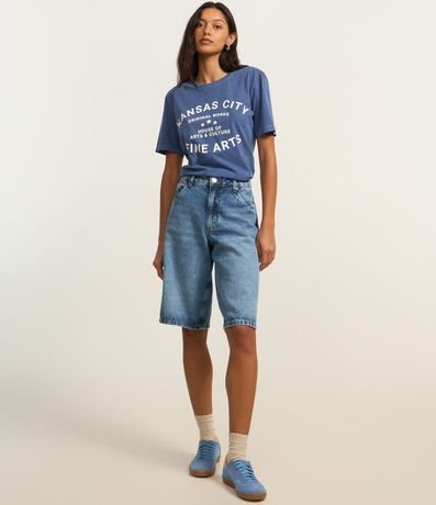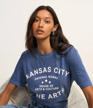 Ref: Tshirt alongada com manga curta, confeccionada em algodão bci mais sustentável com estampa frontal em lattering Kansas City.