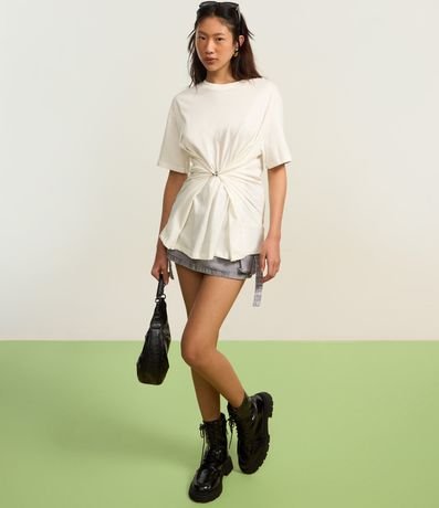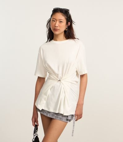 Ref: T-sirt manga curta, alongada confeccionada em algodão bci mais sustentável e produzida através de boas práticas ambientais. Possui detalhe frontal com piercing centralizado.