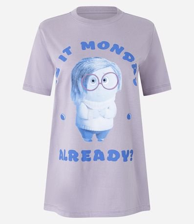 Ref: T-shirt feminina confeccionada em malha de algodão mais responsável, de modelo alongado, com gola redonda e mangas curtas. Possui estampa frontal da personagem Tristeza de 'Divertidamente' com lettering.