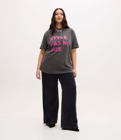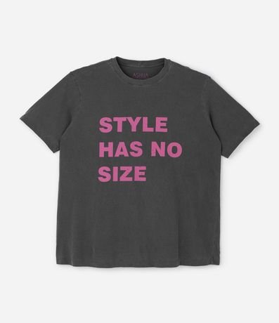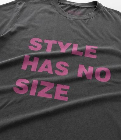 Ref: Camiseta feminina confeccionada em algodão mais sustentável, no modelo alongado. Possui gola redonda, manga curta e estampa lettering "Style has no size".