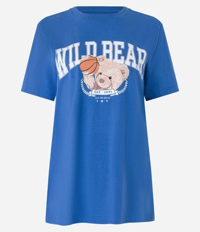Ref: Camiseta alongada, mangas curtas, confeccionada em material mais sustentável e estampa frontal ursino college com bola de basquete.