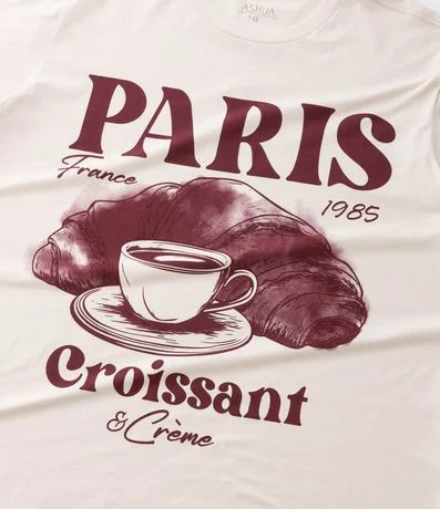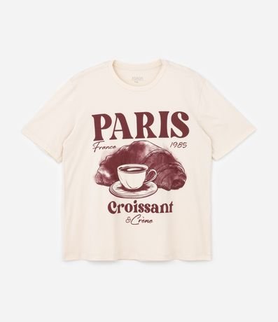 Camiseta Alongada Estampa Paris Croissant e Crème Curve & Plus Size