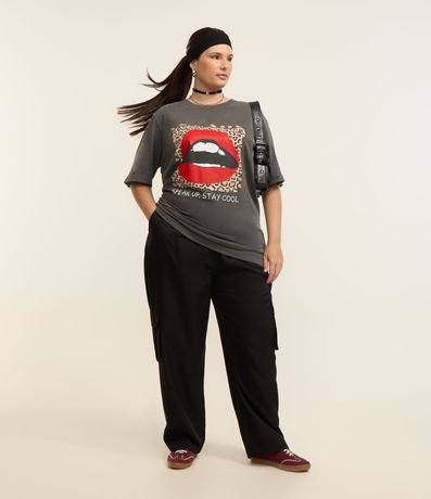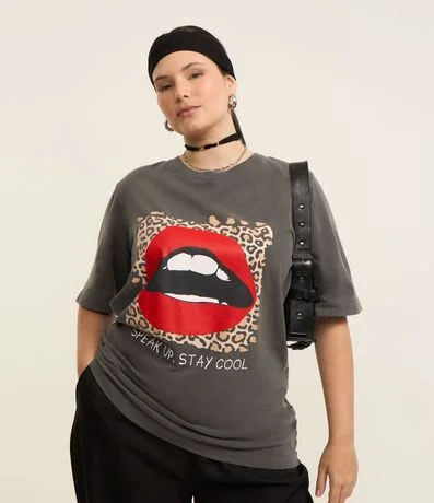 Ref: Blusa confeccionada em algodão mais sustentável e com efeito estonado. A peça tem corte alongado, gola redonda, mangas curtas e estampa frontal de boca com moldura de oncinha e lettering "speak up stay cool".