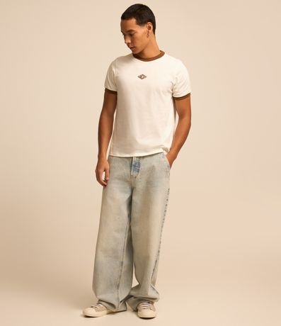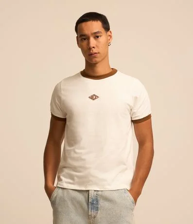 Ref: Camiseta baby tee, em algodão com etiqueta emborrachada no peito e gola e barra das mangas contrastantes.