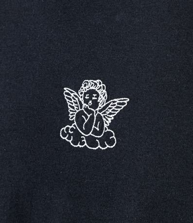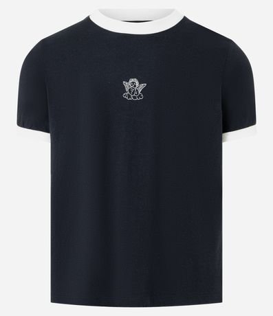 Ref: Camiseta masculina confeccionada em algodão mais sustentável através de boas práticas ambientais, no modelo baby tee. Possui gola redonda, contrastante, manga curta e mini ícone de anjo.