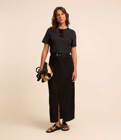Ref: Camiseta básica em algodão peruano, com gola redonda careca, manga curta e sem estampa.