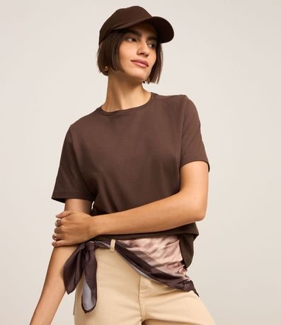Ref: Camiseta básica em algodão peruano, com gola redonda careca, manga curta e sem estampa.