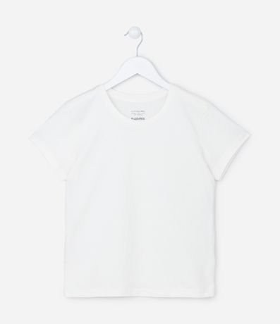 Ref: Camiseta infantil em algodão, com gola redonda, mangas curtas e sem estampa.