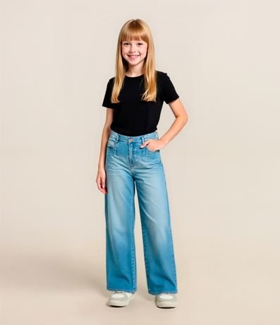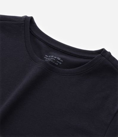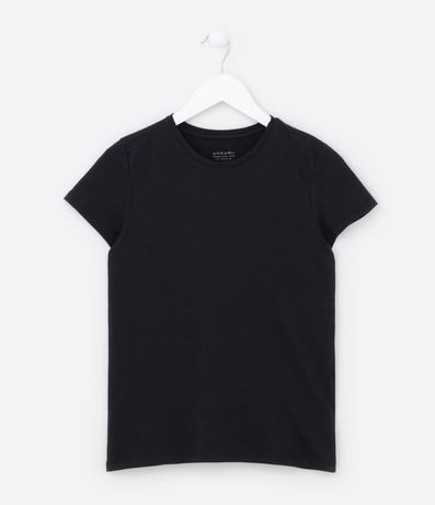 Ref: Camiseta básica infantil em meia malha com gola redonda, mangas curtas e sem estampa.