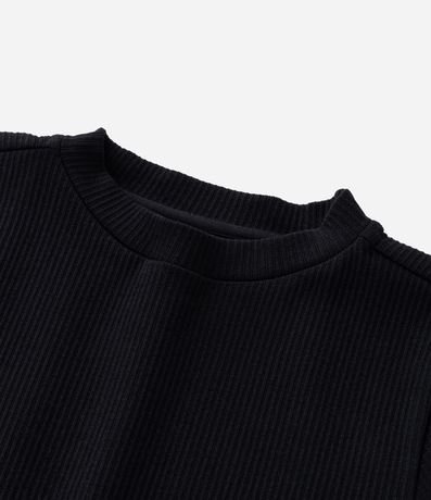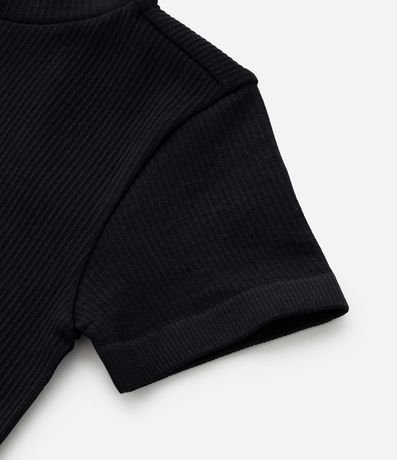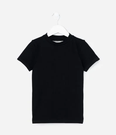Camiseta infantil texturizada, com gola alta, mangas curtas e sem costura. Peça básica.