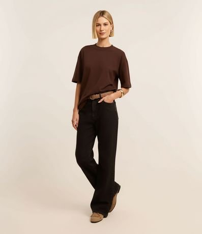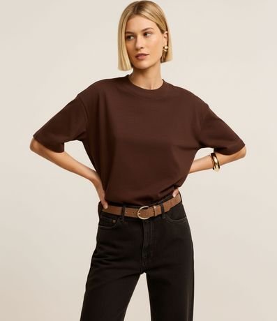 Ref: Camiseta básica feminina confeccionada em malha encorpada, de modelo relaxed, com gola redonda e mangas curtas.
