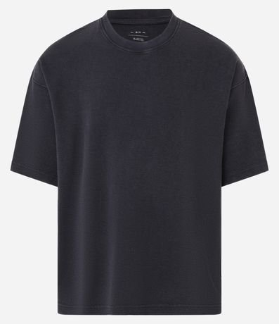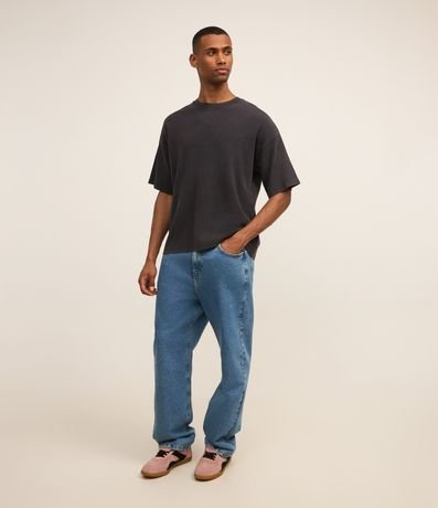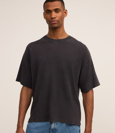 Camiseta masculina confeccionada com material mais sustentável, gola redonda, manga curta. Peça no modelo boxy com textura waffle.