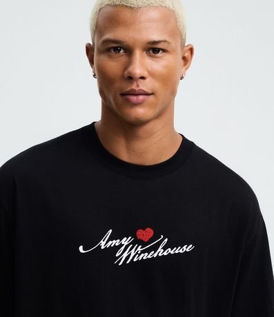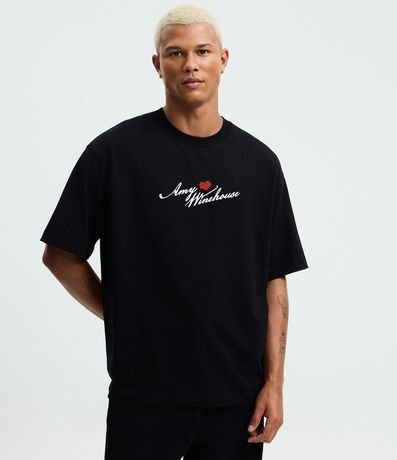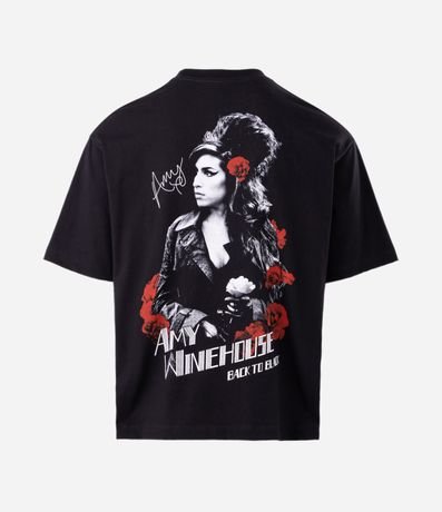 Ref: Camiseta masculina no modelo boxy com gola redonda. A peça possui mangas curtas e estampa da cantora Amy Winehouse com referência a ao seu álbum Back to Black.