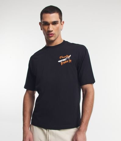 Camiseta boxy, manga curta, confeccionada em algodão e com estampa frente e costas Charlie Brown Jr.