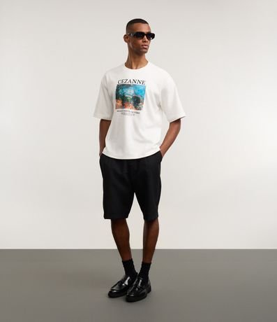 Ref: Camiseta boxy confeccionada em algodão certificado BCI e boas práticas ambientais. Possui gola redonda, mangas curtas e estampa artística inspirada em obras de Paul Cézanne, trazendo visual cultural e moderno para compor looks urbanos versáteis e cheios de estilo.