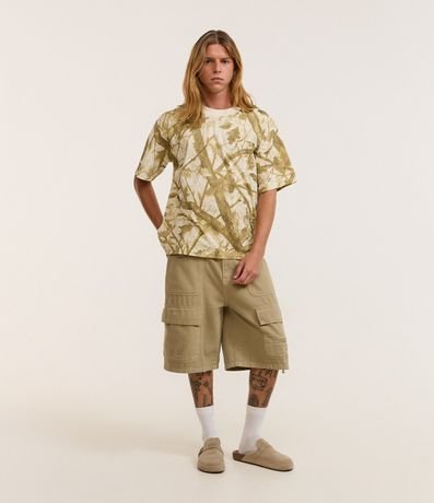 Ref: Camiseta confeccionada em malha de algodão BCI. A blusa modelo boxy tem gola redonda sem estampa, mangas curtas e estampa total de folhagens.
