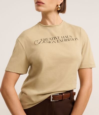 Ref: Camiseta boxy com manga curta, confeccionada em algodão bci mais sustentável e estampa frontal em lettering.