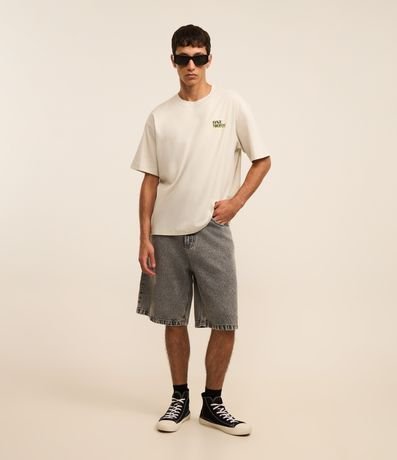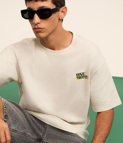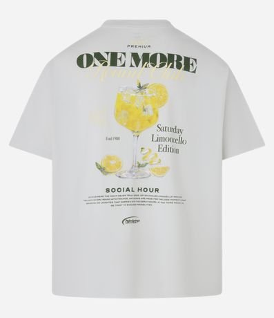 Ref: Camiseta masculina confeccionada em algodão mais sustentável com boas práticas ambientais, gola redonda, manga curta. Peça no modelo boxy com estampa de drink limoncello.