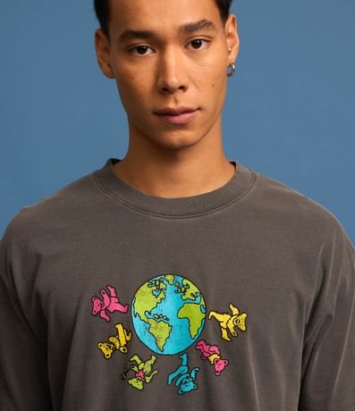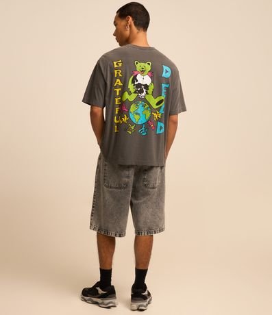 Ref: Camiseta masculina confeccionada em material mais sustentável, gola redonda, manga curta. Peça no modelo boxy com estampa divertida com a frase grateful dead.