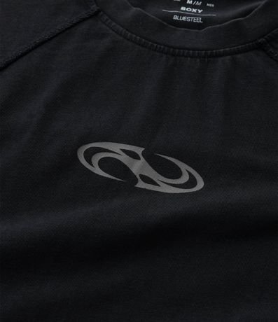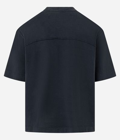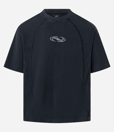 Ref: Camiseta masculina com modelagem boxy, gola redonda, estampa lettering e costuras em destaque. Confeccionada com processo mais sustentável e algodão certificado BCI.