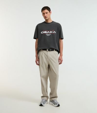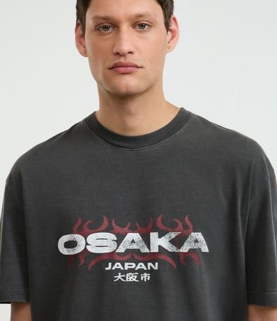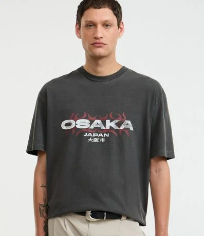 Ref: Camiseta masculina modelo boxy em meia malha, com gola redonda e estampa localizada de lettering Osaka Japan. Ideal para compor looks urbanos e modernos com conforto e estilo.