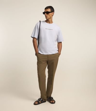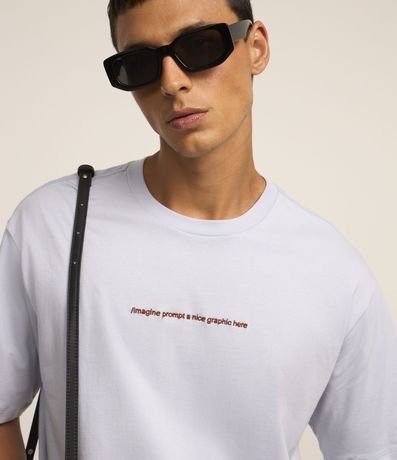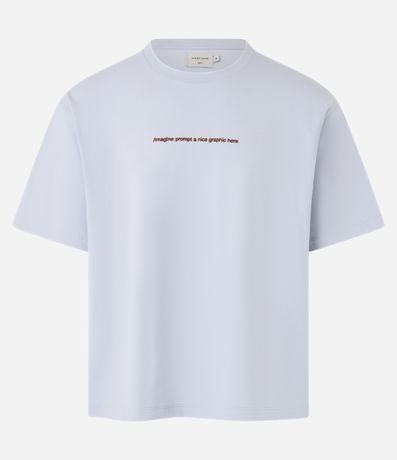 Ref: Camiseta masculina confecciona em algodão mais sustentável, gola redonda, manga curta. Peça no modelo boxy com estampa lettering com a frase imagine prompt a nice graphic here.