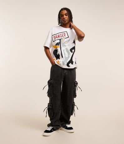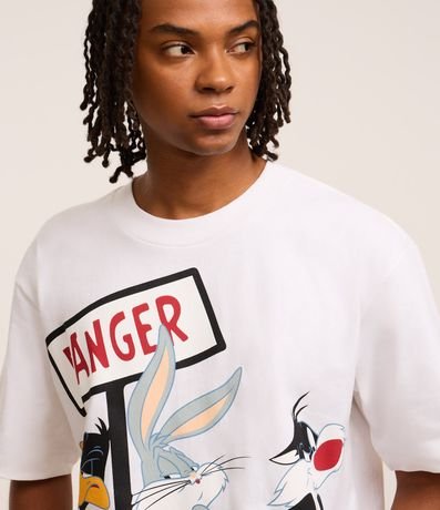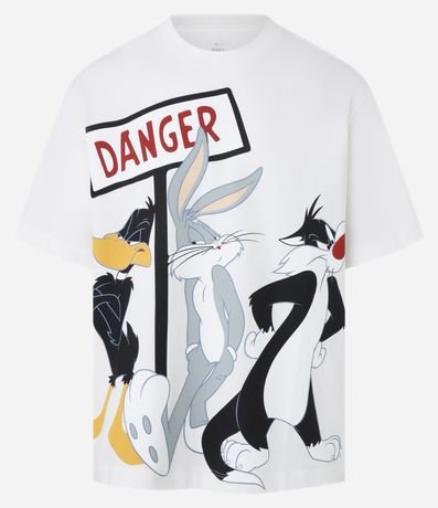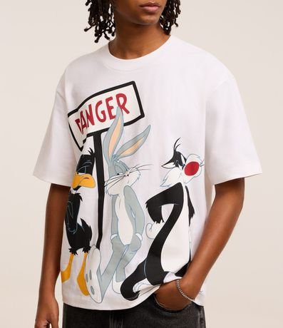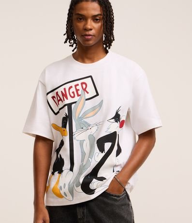 Ref: Camiseta masculina confeccionada em algodão mais sustentável com boas práticas ambientais no modelo boxy, possui gola redonda, manga curta e estampa Looney Tunes.