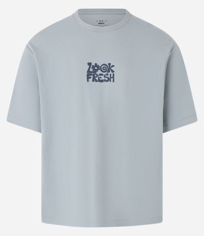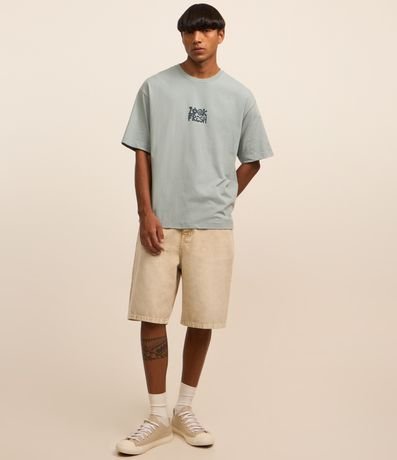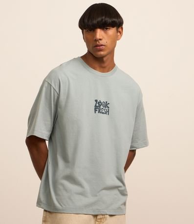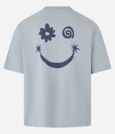 Camiseta masculina confeccionada em algodão mais sustentável, gola redonda e manga curta. Peça no modelo boxy com estampa divertida do smile.